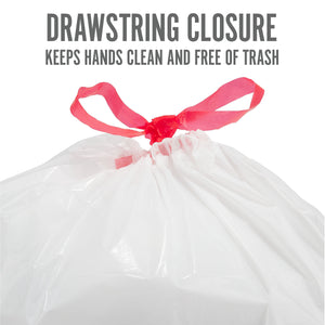 - Bags come with a drawstring closure that keeps hands clean and free of trash