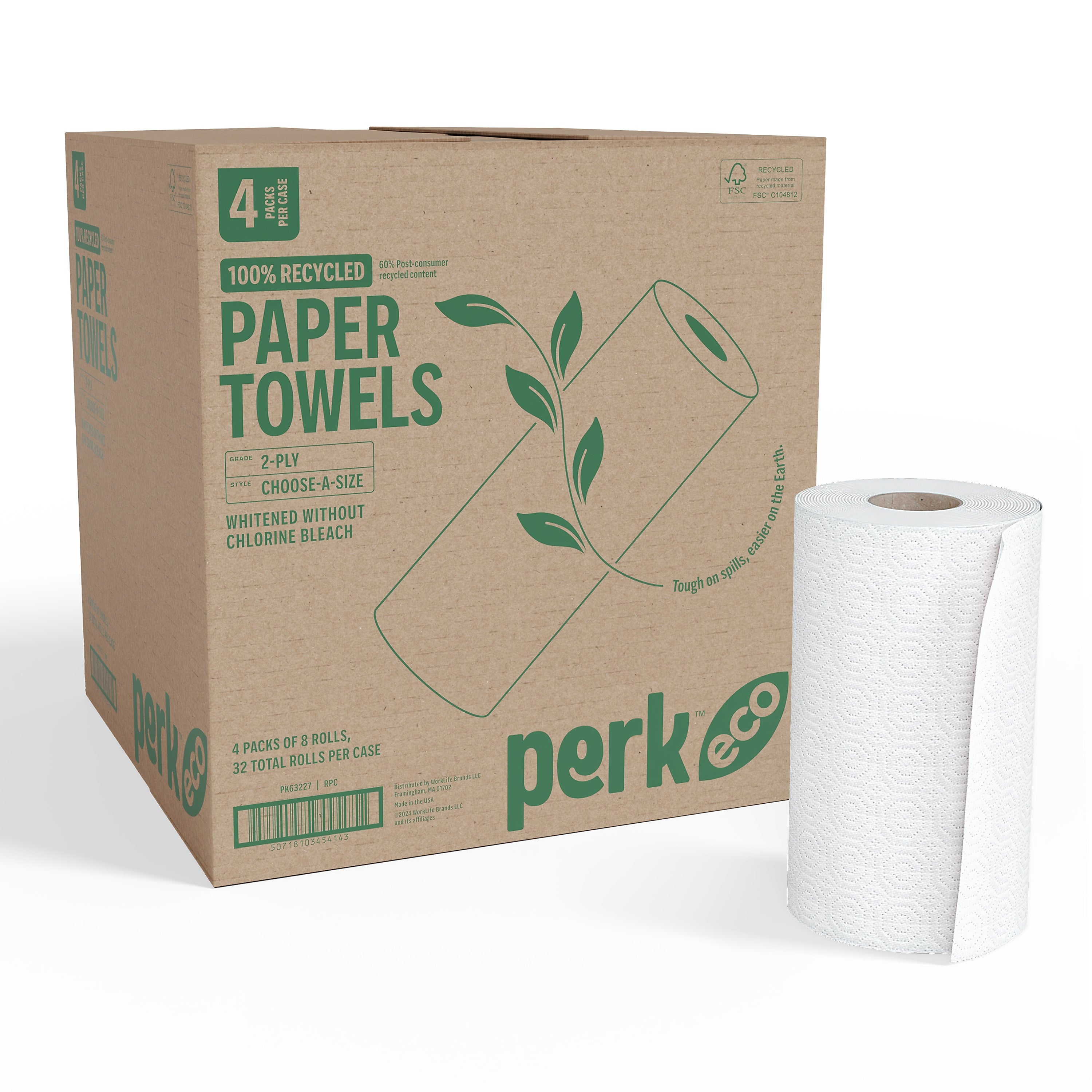 Perk™ Eco Recycled Paper Towels, 2-ply, 156 Sheets/Roll, 32 Rolls/Pack (PK63227CT)