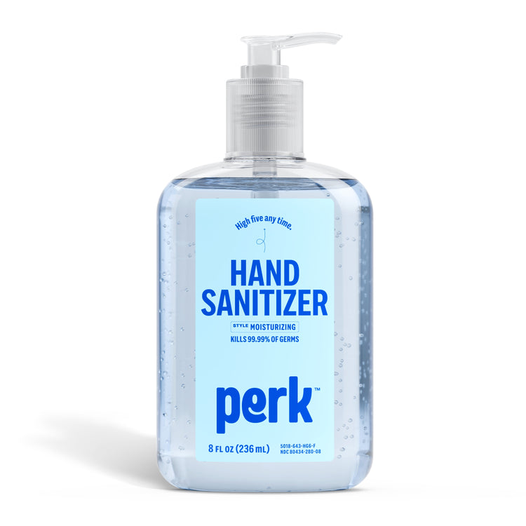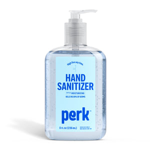 Keep a bottle of this Perk™ germ-killing hand sanitizer ready to go so you're always ready for a greeting. Alcohol based formula with moisturizers offers an effective way to kill 99.9 percent of germs and keeps your hands soft enough for shaking without damaging skin. Hands feel soft, and not irritated even after many uses. This 8-ounce bottle of Perk™ germ-killing hand sanitizer is ideal for placing on office reception counters, conference rooms, personal desk space, school classrooms or anyplace else greetings take place.