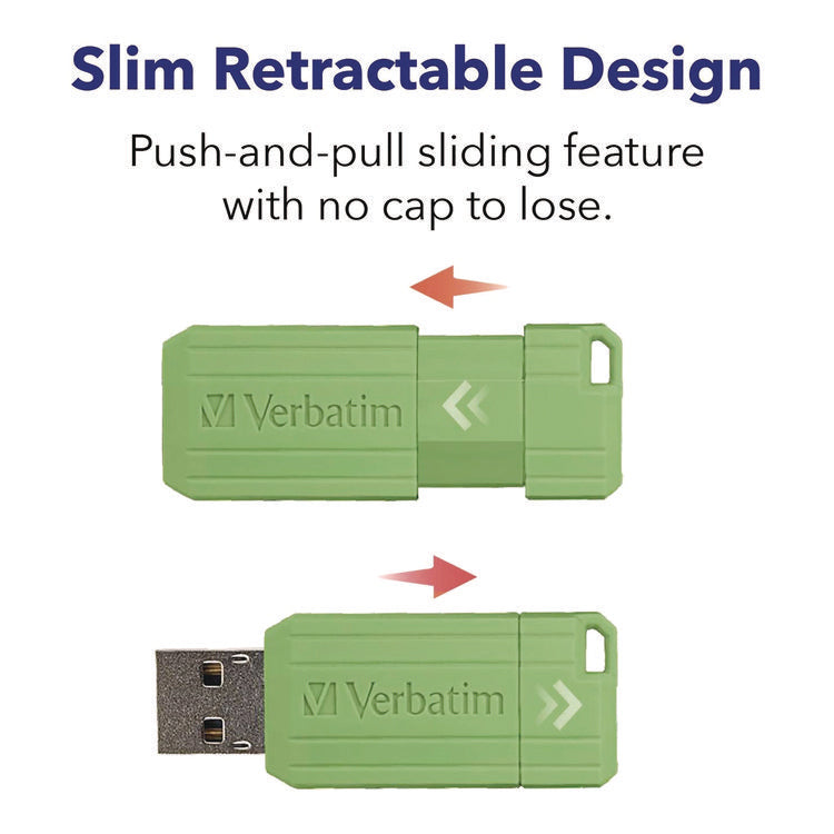 Features a retractable connector with a push-and-pull sliding feature to protect the USB connector when not in use, eliminating the need for a cap. It features a lightweight, pinstriped design. The PinStripe drive makes transporting and sharing files simple.