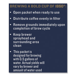 Seek your fortune with 1850 Pioneer Blend medium roast ground coffee. Made with 100 percent Arabica beans, this medium roast coffee is balanced with notes of roasted nut flavor. Pre-measured packs are ground for easy commercial brewing.