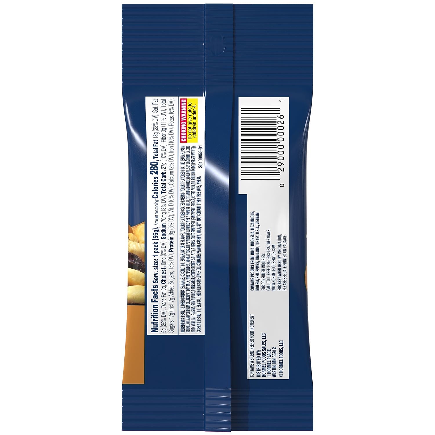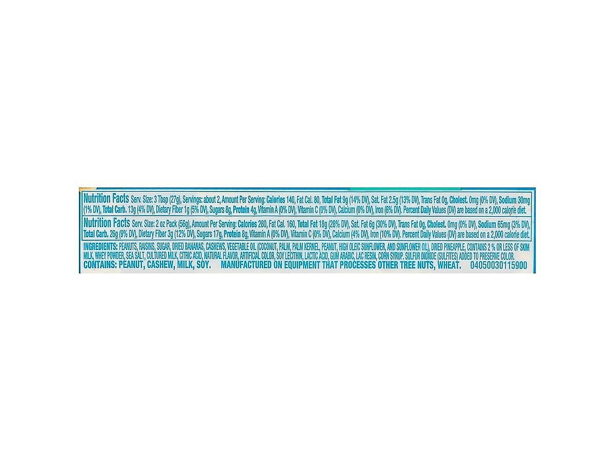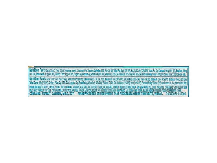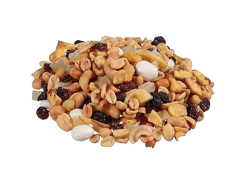 View Details- Trail mix contains roasted peanuts, banana chips, raisins, pineapple, and yogurt-covered raisins
