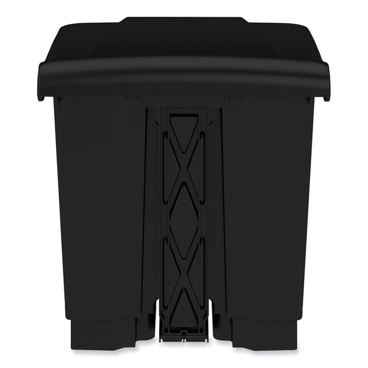 Plastic Step-On Receptacle, 8 gal, Metal, Black