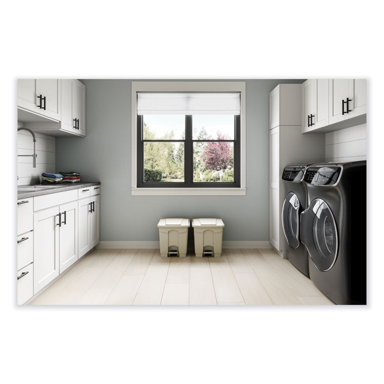 Plastic Step-On Receptacle, 8 gal, Metal, Tan