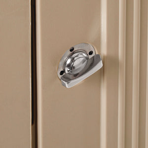 - Spring-loaded doors conceals contents, traps odors, and prevents pest intrusion