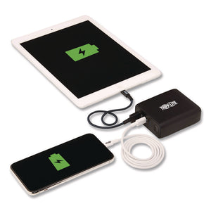 Portable Mobile Power Bank and USB Battery Wall Charger Combo, USB C, USB A, Black