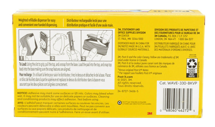 - Dispenser holds 3 in x 3 in Dispenser Notes, Black with wave design pattern on all sides, 3 Pads Post-it Dispenser Notes included