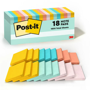 Imagine yourself at the shore with the coastal tones of the Beachside Café collection. These sticky notes feature a unique adhesive designed for use on paper or in planners. Post-it Notes stick securely yet remove cleanly without damage. Keep your ideas across your notebooks, classroom books, calendars or other documents. No tape or tacks are needed with adhesive notes, saving you money and time on office products or school supplies. Ideal for writing notes or reminders to yourself or others, Post-it Notes are the perfect solution for time tracking, to-do lists, marking cables, color-coding documents, reminding kids to do chores, storyboarding and more. All Post-it Notes are sourced from certified, renewable and responsibly managed forests. You can also recycle them when they are no longer needed. Each sticky notes sheet is approximately 3 in x 3 in, with 18 pads per pack, 100 sheets per pad in Fresh Mint, Aqua Splash, Sunnyside, Papaya Fizz, Pink Salt.