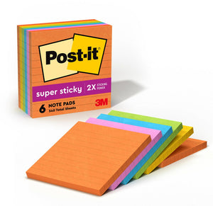 Post-it Super Sticky Notes, 4" x 4", Energy Boost Collection, Lined, 90 Sheet/Pad, 6 Pads/Pack (6756SSUC)
