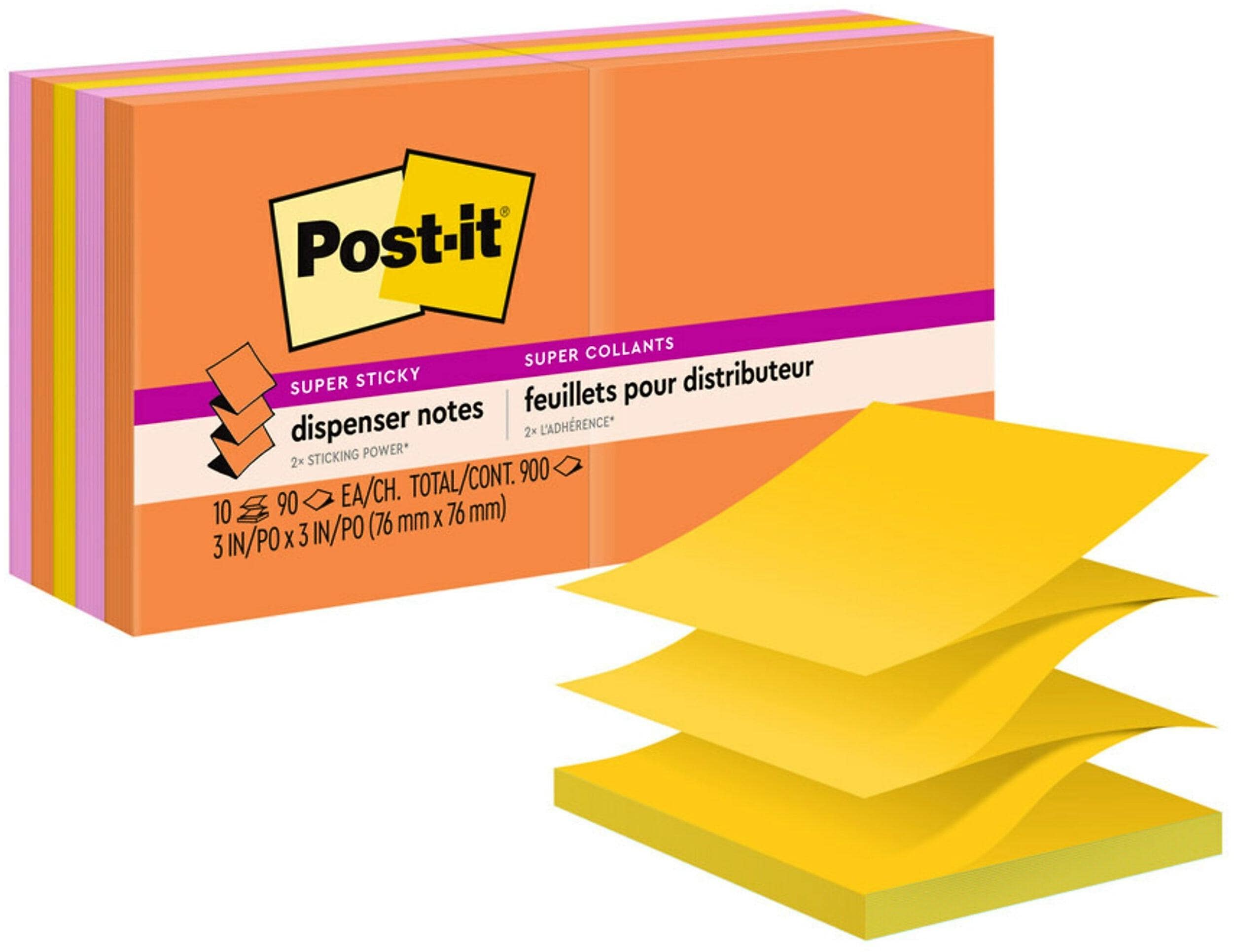 Post-it Super Sticky Pop-up Notes, 3" x 3", Energy Boost Collection, 90 Sheet/Pad, 10 Pads/Pack (R33010SSAU)