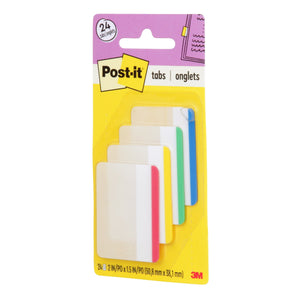 Stay Strong Over Time: Post-it Lined Tabs are perfect for keeping you organized as time goes on. These durable tabs are great for labeling file folders, creating sections in notebooks, and adding dividers in binders. Post-it Tabs will stay put over long periods of time, so they are perfect for those projects you continually revisit. Color Coordinate with Post-it Tabs: Post-it Lined Tabs have bold color stripes to make sure that your files and tabbed items stay visible in a busy office. Use these colored filing tabs to color-coordinate projects and papers that need to stay together. The color stripe on Post-it Tabs will keep your documents coordinated while the white space below allows you to clarify exactly what a specific file contains. Post-it(R) Tabs will help keep your folders and files organized. Put Your Filing System to the Test: Post-it Tabs in 2 inch size create necessary order by easily organizing file folders. Lined color bars give you flexibility to organize by color. They are durable, you can write on them, and reposition as needed. They are also great for planners, notebooks and file folders. They stick securely and remove cleanly. Assorted Primary Colors. Contains 6 tabs/color, 4 colors, 24 tabs/pack.