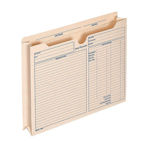 Organize work orders, invoices and other project information with these expanding job folders. Three-sided closures keep paper secure inside, while the thumb-cut fronts offer easy access to the documents stored inside. Each jacket features a preprinted form with inputs for job names, materials, labor costs and other important details. With 2" expansions, these Adams® manila job folders hold thick stacks of paperwork.