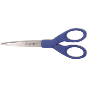 Westcott has provided the world with innovative and well designed products for over a century... at affordable prices, without sacrificing quality. All-purpose shears with corrosion-resistant, stainless steel blades. The blades are ground on the inside and back edges for smooth, effortless cutting. Insert molded into plastic handles for greater durability. Made for both right and left-handed use. Made for lightweight usage perfect for paper, ribbon and and photos.