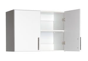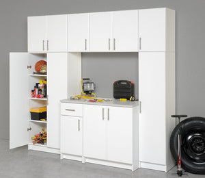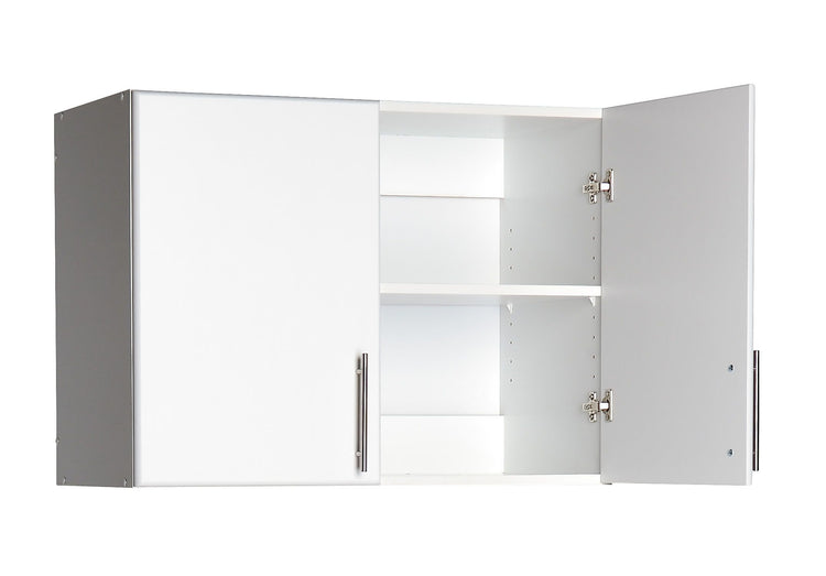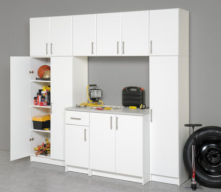 Prepac™ Elite 32" stackable wall cabinet is constructed from CARB-compliant laminated composite woods with a sturdy MDF backer. Cabinet has fresh white laminate finish and European-style 6-way adjustable hinges.