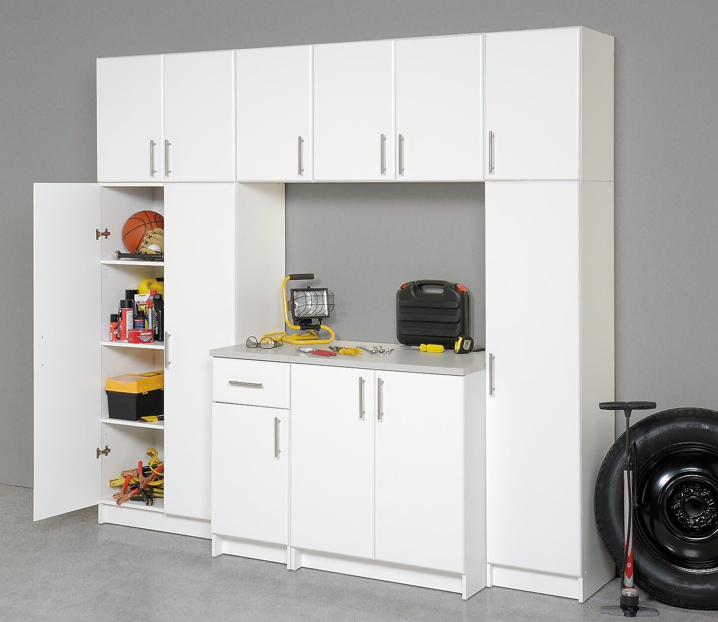• Door can be mounted on left or right side of cabinet, no fixed center shelf enables storage of brooms and other tall items, easy to clean, durable melamine surfaces