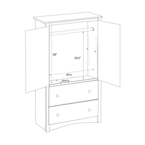 - Internal dimensions: 38"(H) x 28"(W) x 20.75"(D) (opening), 5"(H) x 24.75"(W) x 12.5"D (drawers)