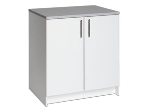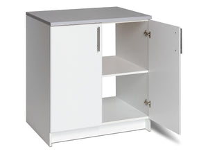 Organize work or hobby essentials in this white base cabinet. The CARB-compliant laminated composite wood and MDF construction withstand rugged use in kitchens, garages, or stockrooms, and the 20-pound capacity per shelf supports heavy items. This Prepac Elite base cabinet has spacious compartments, high-quality European-style doors and brushed metal handles, making it a functional, stylish addition to any space.
