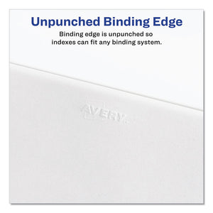 Rip Proof reinforced, dual-sided, laminated tabs make it easy to organize your information. The binding edge is unpunched, so these dividers can fit practically any binding system. Ideal for briefs, legal exhibits, mortgage documentation files and more! Avery® Style is Helvetica bold type style and Allstate® Style is Helvetica regular type style.