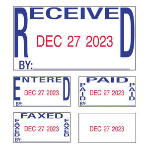 Printy Economy 5-in-1 Date Stamp, Self-Inking, 1.63" x 1", Blue/Red