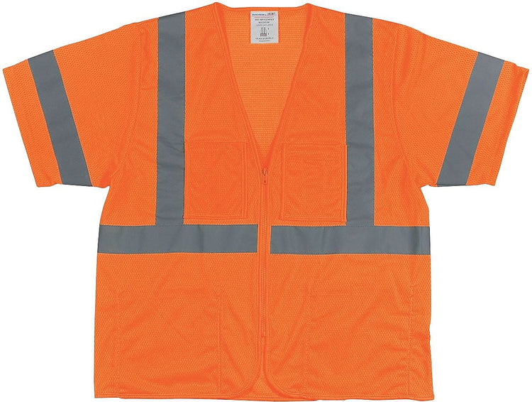 Protective Industrial Products High Visibility Safety Vest, ANSI/ISEA 107-2015 Class 3, Type R, Orange, 3XL, 10/Pack