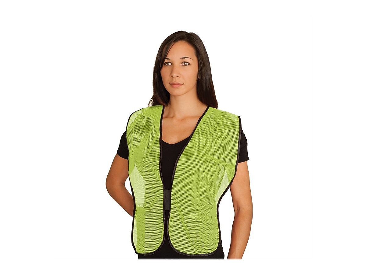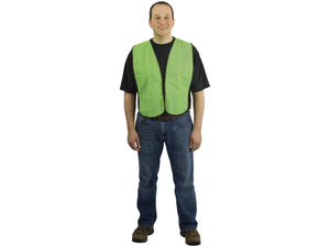 Stay safe when working with this vest. The lime-yellow color offers high visibility, ensuring that drivers, bikers and others using the area see you, while the hook-and-loop closure helps keep this vest securely in place even during strenuous activities. This PIP non-ANSI one-size safety vest is made from polyester mesh material, offering enhanced ventilation for a more comfortable experience.