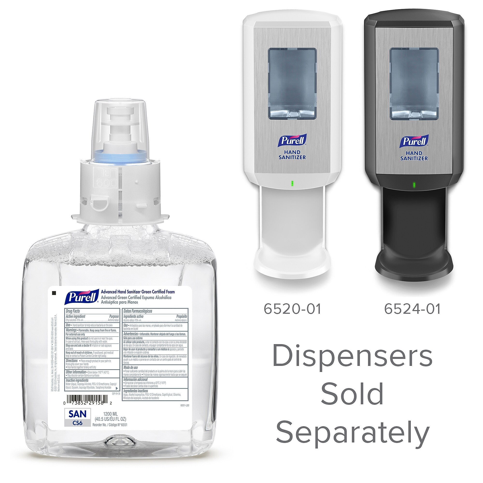 - Works with the PURELL CS6 Touch-Free Hand Sanitizer Dispenser (sold separately, SKU 6524-01 and 6520-01); large refills are ideal for high-traffic areas