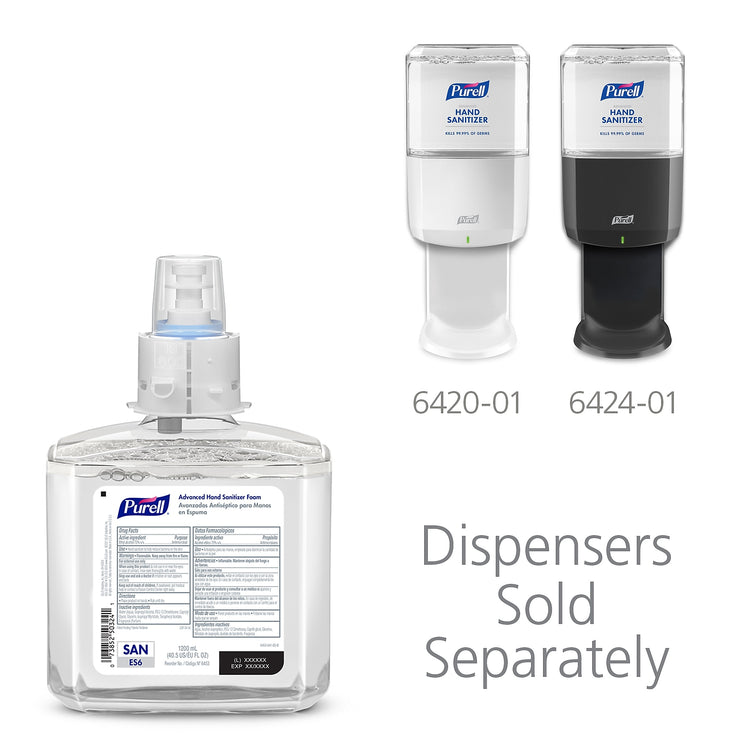 - Case Includes: 2 – PURELL Brand Advanced Hand Sanitizer Foam, 1200 mL Refills for the ES6 Automatic Hand Sanitizer Dispenser; ES6 dispensers (SKUs 6420-01 and 6424-01) are sold separately.