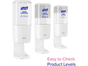 - Case Includes: 1 — PURELL ES10 Automatic Hand Sanitizer Dispenser in White with included adhesive tape to mount to wall. Refills sold separately.