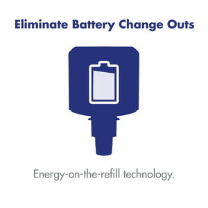 An elegant floor stand that reinforces high quality standards, while complimenting any décor. "Energy-on-the-Refill" technology - every refill has a built-in energy source, designed to last as long as the refill.