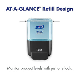 - Mild foam hand soap refill for ES4 Push-Style soap dispenser, makes a positive impression and simplifies restroom maintenance. 84 percent of people said that seeing PURELL products makes them satisfied with the overall cleanliness of a facility