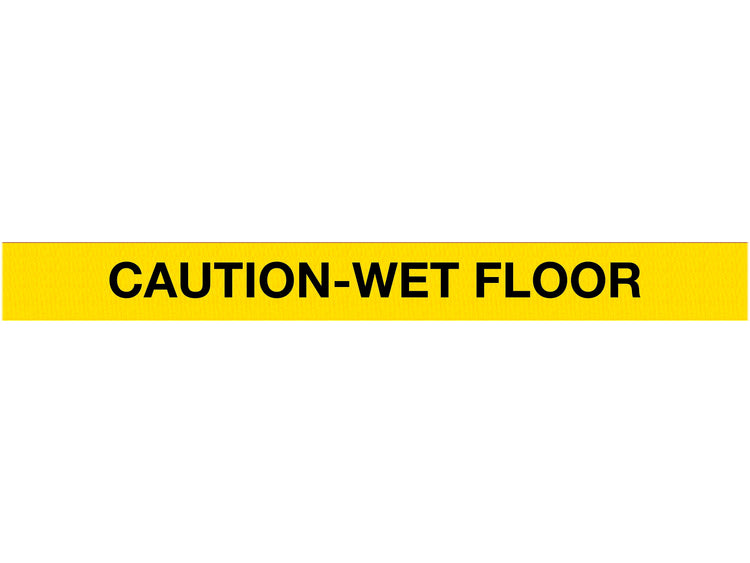 Queue Solutions WeatherMaster 250 2" Orange Nylon Crowd Control Belt Barrier, Yellow - CAUTION WET FLOOR (WMR250O-YBCWF110)