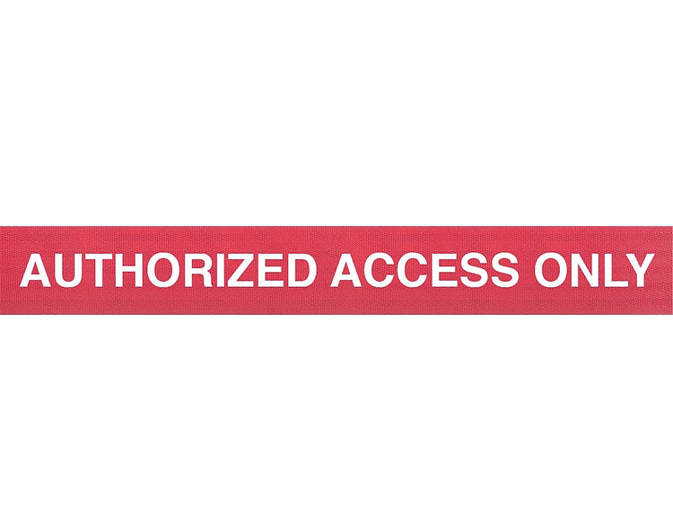 Queue Solutions WeatherMaster 250 2" Red Nylon Crowd Control Belt Barrier, Red - AUTHORIZED ACCESS ONLY (WMR250R-RWA110)