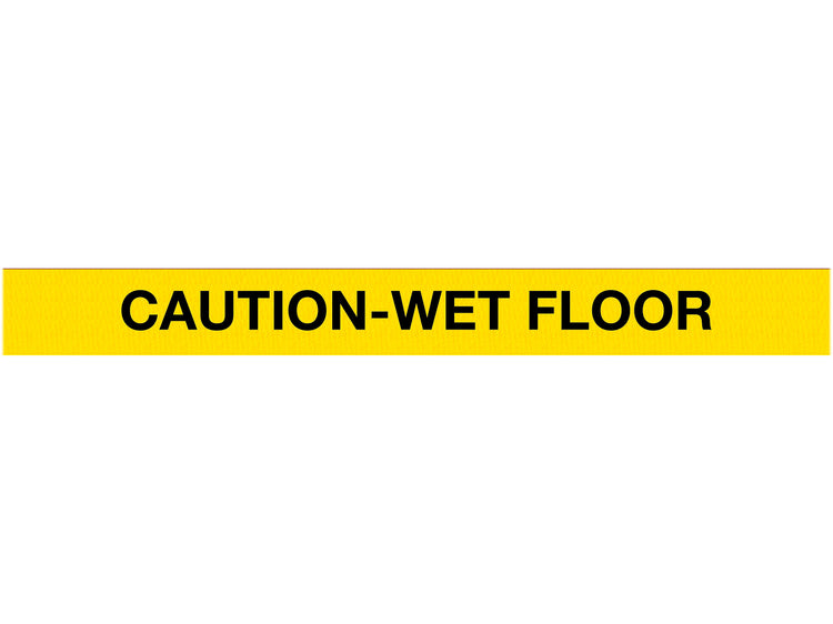 Queue Solutions WeatherMaster 250 2" Yellow Nylon Crowd Control Belt Barrier, Yellow - CAUTION WET FLOOR (WMR250Y-YBCWF110)