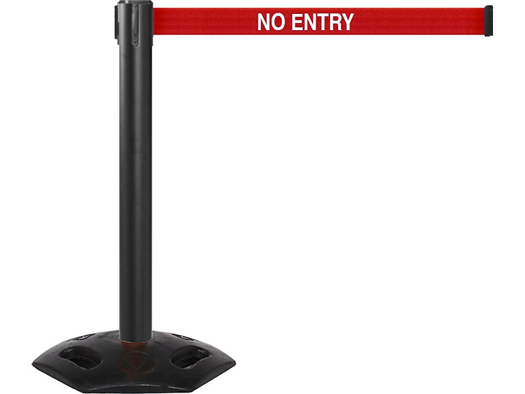 Queue Solutions WeatherMaster 300 2" Black Nylon Crowd Control Belt Barrier, Red - NO ENTRY (WMR300B-RWN160)