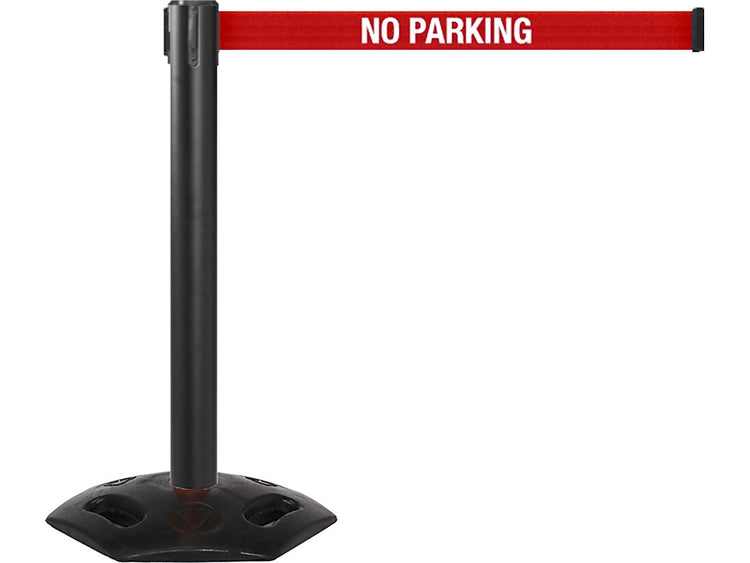 Queue Solutions WeatherMaster 300 2" Black Nylon Crowd Control Belt Barrier, Red - NO PARKING (WMR300B-RWNP160)