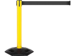 Queue Solutions WeatherMaster 300 2" Yellow Nylon Crowd Control Belt Barrier, Black (WMR300Y-BK160)