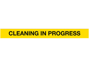 - Features rubber base in black, stainless steel post in yellow, and woven nylon belt in yellow with black text