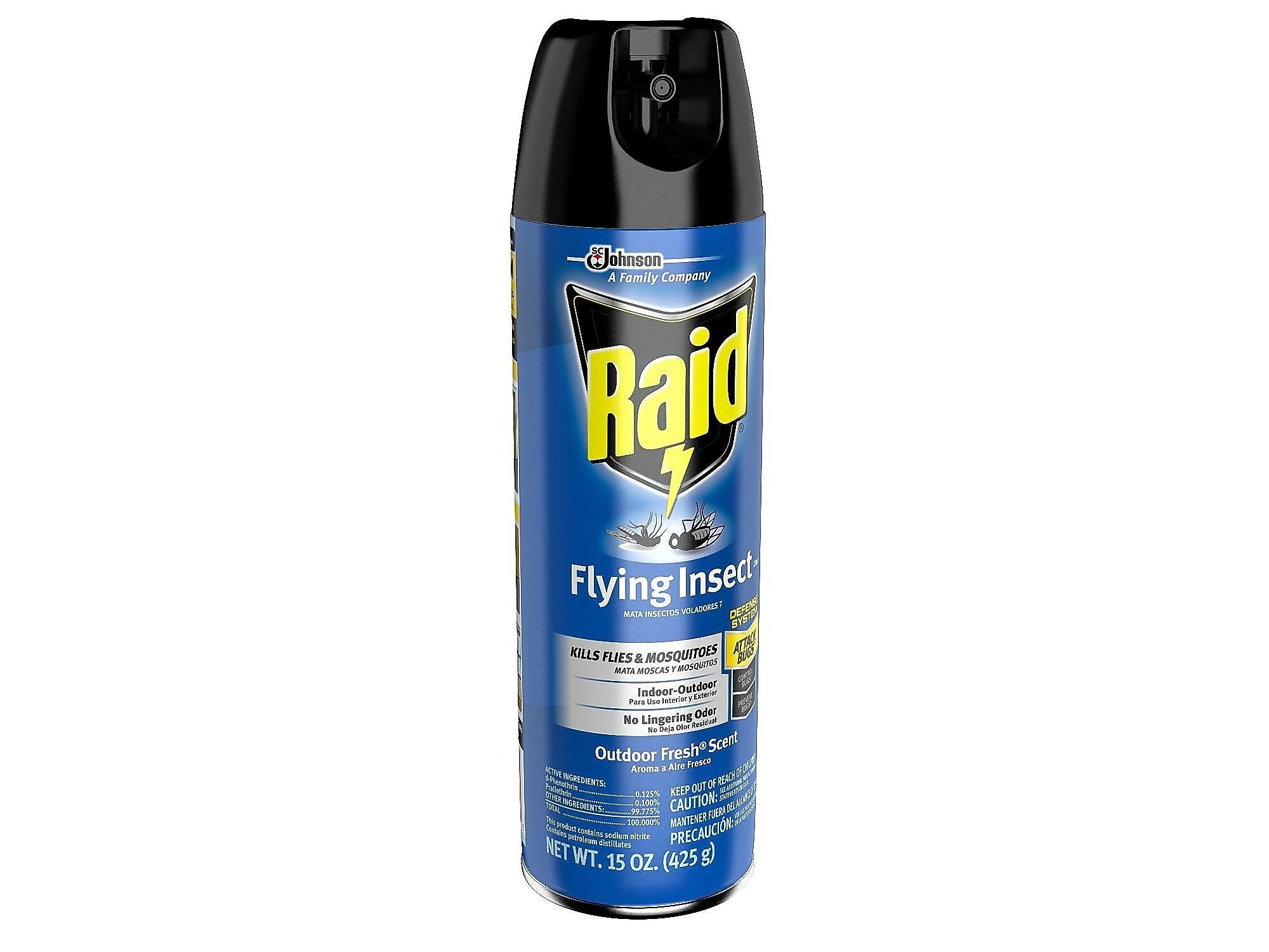 Treat your indoor or outdoor spaces with Raid Flying Insect Killer spray to protect your home from all kinds of flying pests. The aerosol spray is formulated specifically to exterminate various flying insects, including flies, mosquitoes, flying ants and hornets. With a fresh outdoor scent, Raid Flying Insect Killer spray protects your spaces from winged bugs while leaving a pleasant aroma.
