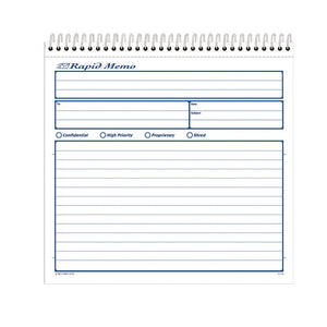 Draft and distribute memos quickly and efficiently. The Adams® Rapid Memo Pad features vertical-orientation forms with a ruled block at top for special notes, a formatted block in the middle for date/subject/recipient details and a ruled block at bottom for the body of the memo. Located between the middle and bottom blocks, a row of handy priority and confidentiality bubbles help you communicate how each memo should be managed. Carbonless, multi-part format allows you to pass along priority memos and keep a copy for yourself. Spiralbound at top.