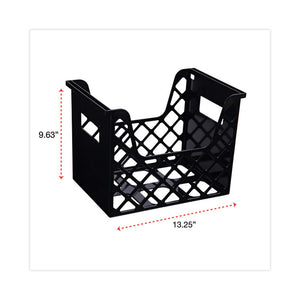 Conveniently store, view, and retrieve files from your desk, tabletop, or floor. Keep a neater workspace by removing the clutter and storing files upright. The convenient step-up inserts allow you to stack in tiers, making it easier to locate the file you need and put it back in its place. Constructed of sturdy, black plastic. Built-in handles are ideal for storage and transport.