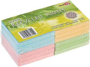 Write down reminders, thoughts, and other notes with these self-stick notes. Featuring a variety of assorted colors, these notes make color-coding important folders and documents easy. Each one is made with 100 percent recycled content, helping reduce environmental impact. These Redi-Tag self-stick notes are made with a strong adhesive, keeping notes in place long after they've been applied.