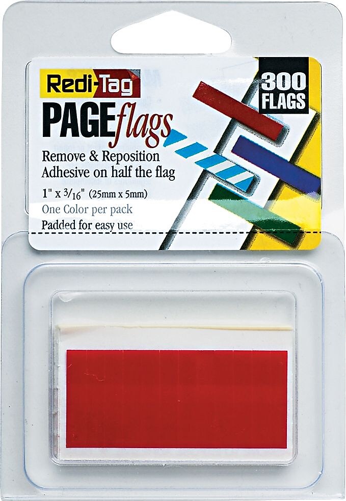 Redi-Tag® Small page flag in red color comes with color coded to help search exactly what is needed quickly. Flag measuring 3/16" x 1" sticks securely and can easily be removed/repositioned.