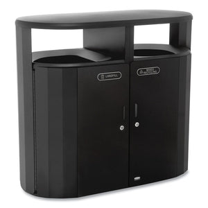 RESIST Dual Stream Waste and Recycling Container, 46 gal, Metal, Black