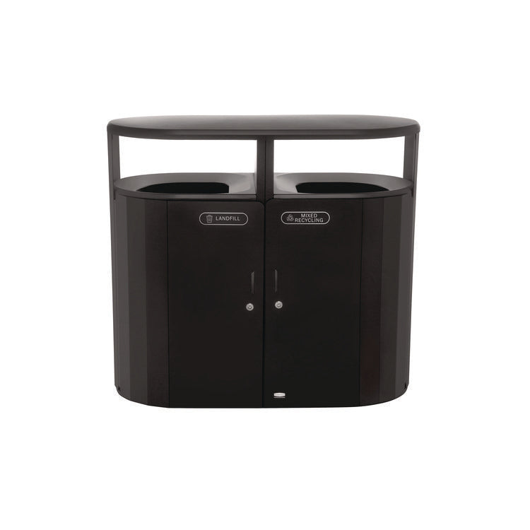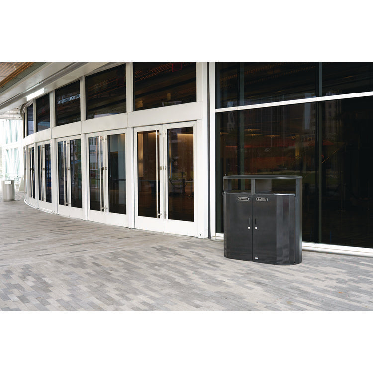 RESIST Dual Stream Waste and Recycling Container, 66 gal, Metal, Textured Black/Black Gloss