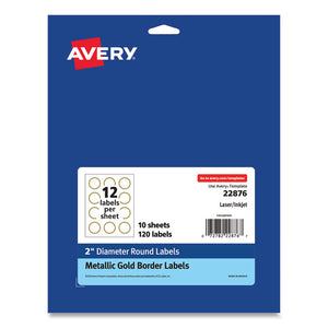 Round Labels, 2" dia, White with Gold Border, 12/Sheet, 10 Sheets/Pack