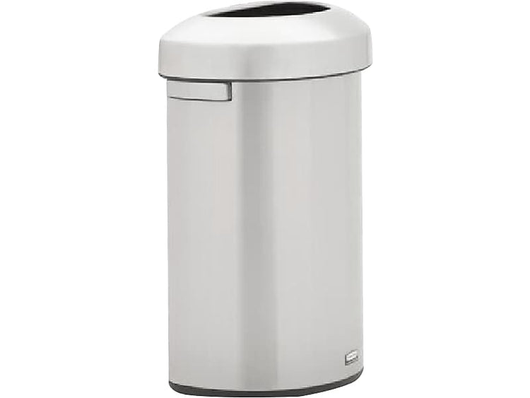 This Rubbermaid semiround trash can lets you dispose of waste items efficiently. Features handles for easy lifting and movement.