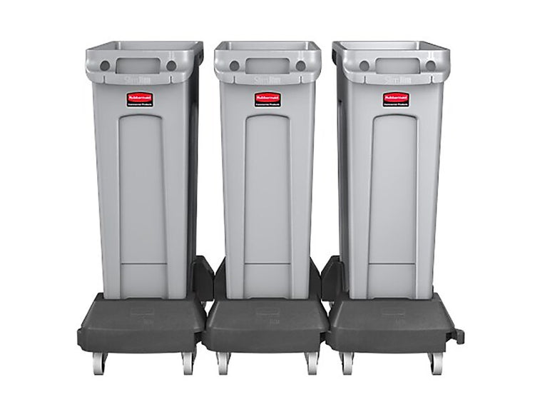 The Rubbermaid Slim Jim resin dolly is designed to support and transport containers smoothly and efficiently through any commercial facility. Features a side clip-on connection that allows you to train several dollies together for collection and transportation purposes. Foot pedal release makes disconnecting dollies quick and easy. Structural foam construction ensures maximum durability in commercial environments.
