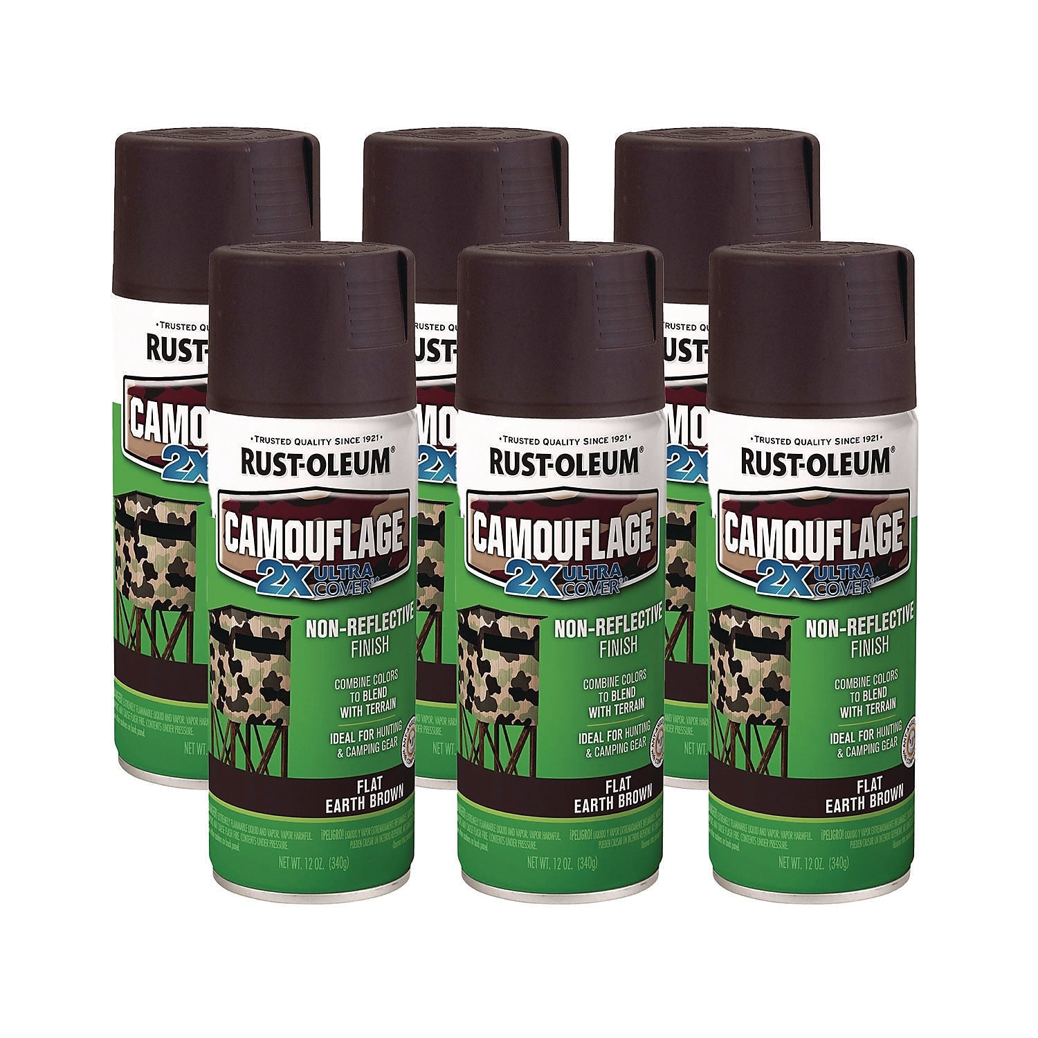 Rust-Oleum Camouflage Spray Paint, Flat Earth Brown, 12 oz. Aerosol Can, 6/Carton (279178)