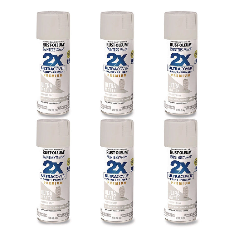Rust-Oleum Painter's Touch 2X Ultra Cover Spray Paint, Gray, 12 oz., 6/Carton (331184)