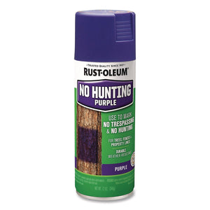 Rust-Oleum Specialty No Hunting Purple Spray Paint is to designate a no-hunting zone without posting traditional signs. When used properly, this is an ultra-durable, weather-resistant formula. It legally indicates a no-hunting/trespassing/fishing zone in participating states. Paint marks must be readily visible to any person approaching the property and must be no more than 100 feet apart. Each mark must be at least 8" wide and at least 3 ft off the ground and no higher than 5 ft off the ground.